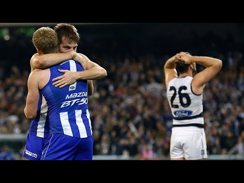 Here are three last 5 minutes videos involving geelong against hawthorn in 2011, north melbourne in 2013 & the 2013 prelim. Geelong have been far from. Do not miss north melbourne kangaroos vs geelong cats game. Geelong and north melbourne are known for having some epic battles over the years, often regardless of ladder positions. The kangaroos at least showed a return to form last week, albeit against the lowly crows.